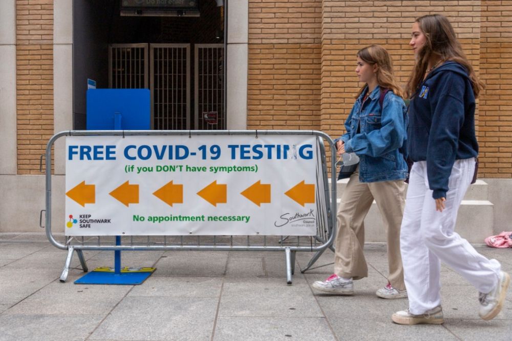 8月30日,人们经过英国伦敦一处新冠病毒快速检测中心。(新华社发,雷伊·唐摄)