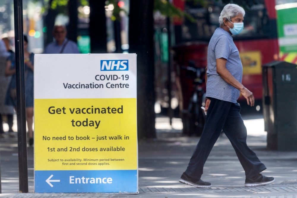 9月7日,一名男子从英国伦敦一家新冠疫苗接种中心门前走过。(新华社发,雷伊·唐摄)